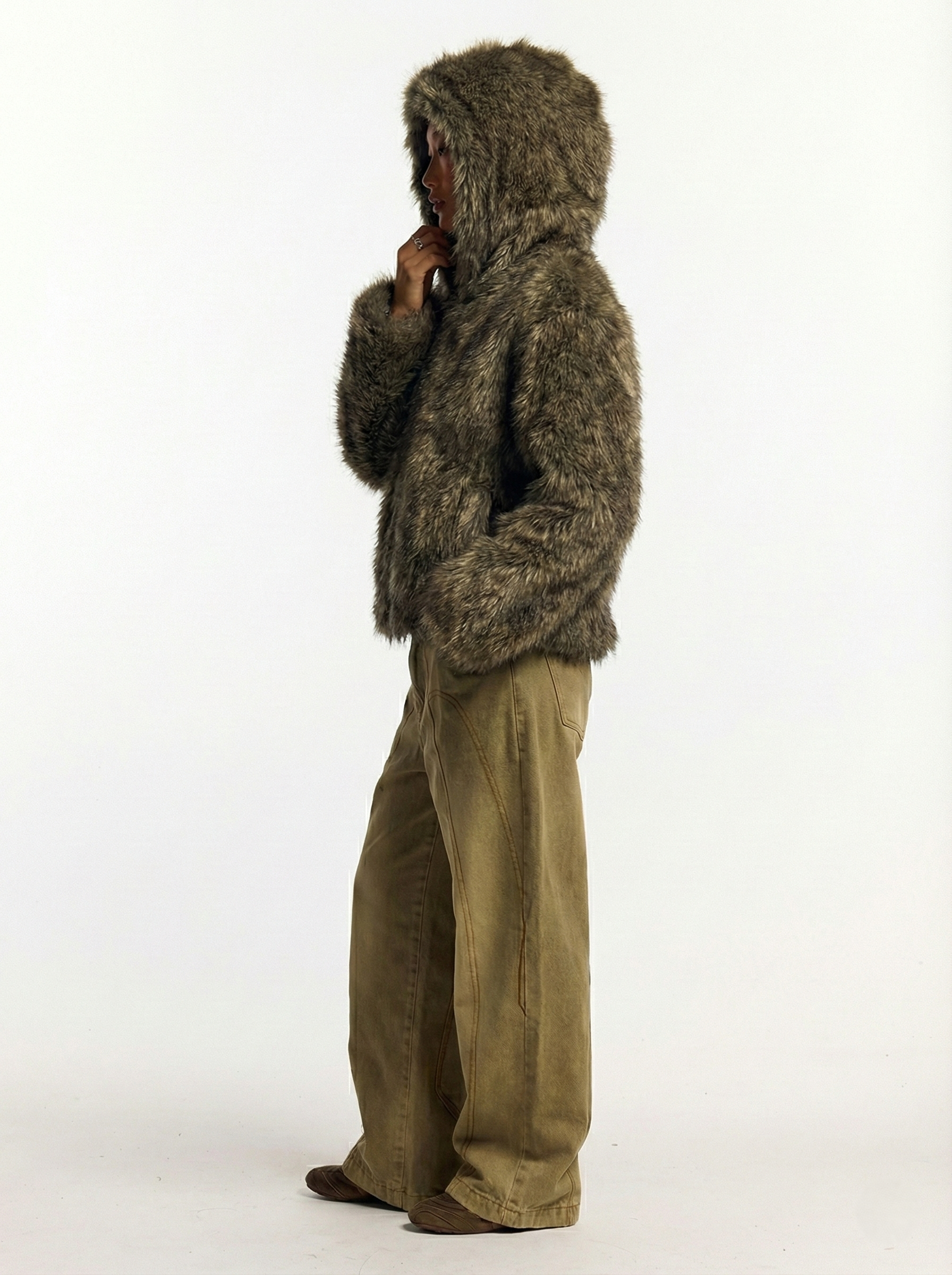 Hooded faux fur Olive jacket